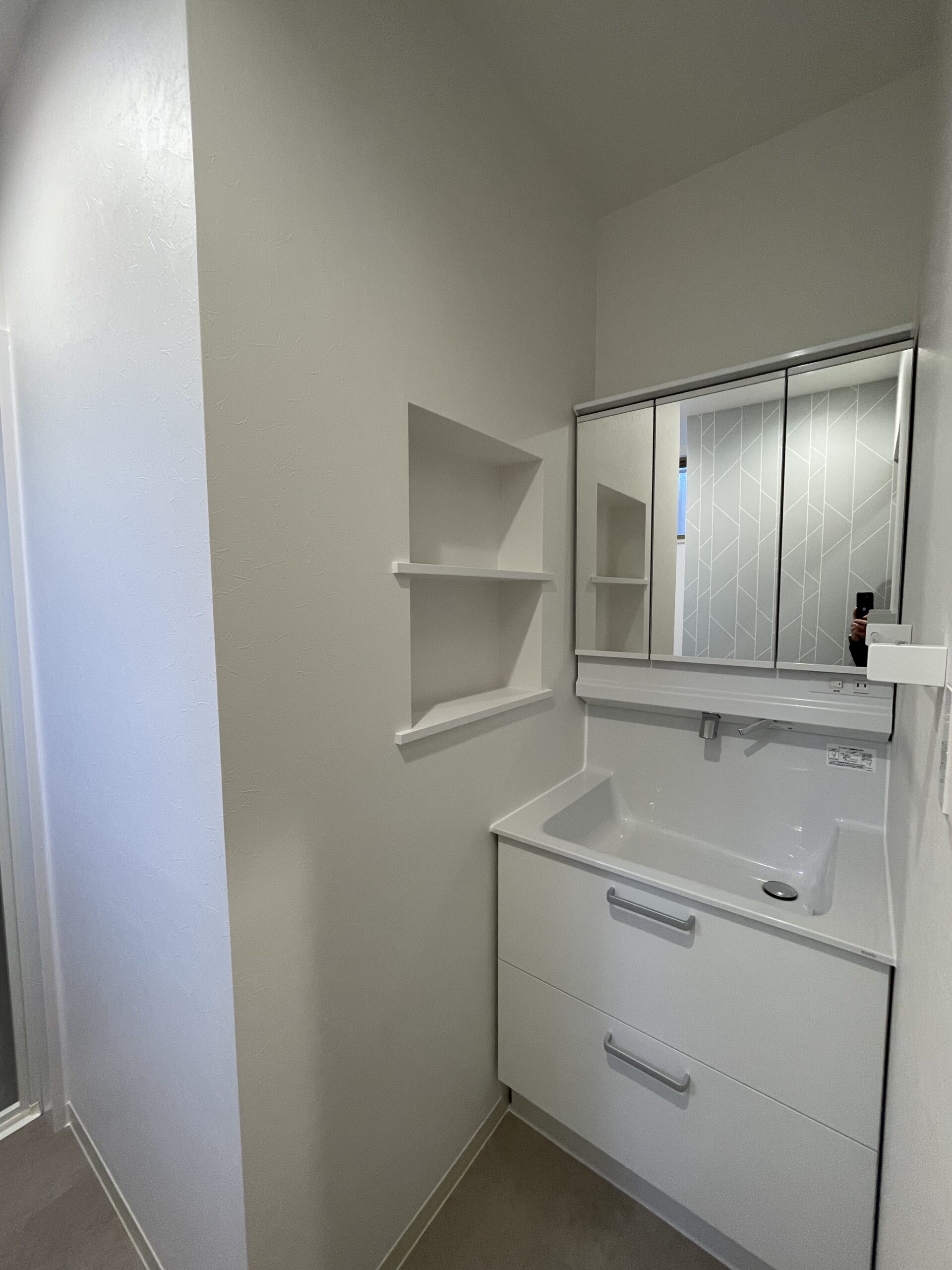まずは、洗濯機を室内に設置できるよう、洗面所内のスペース確保の調整をご提案。そして、洗濯物が干せるウッドデッキを1階に設置することをご提案しました。